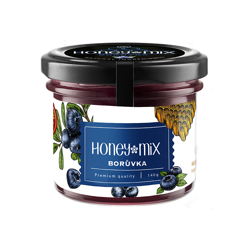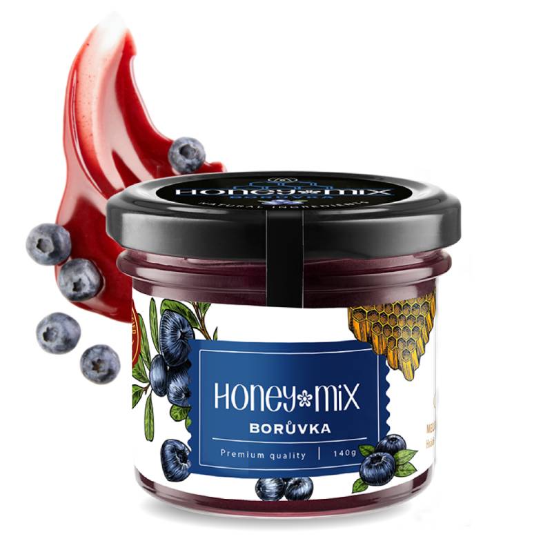 Borůvka 140g. Charakteristická příjemná a velmi oblíbená chuť borůvek je natolik originální, že ji snad lze jen těžko k něčemu připodobnit. Snad jen k ochucenému medu HoneyMix Borůvka, ve kterém nechává plně rozvinout své svůdné vlastnosti.